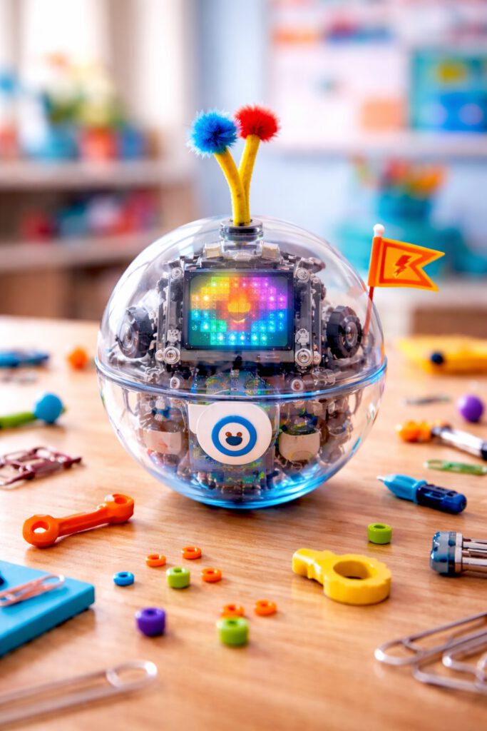 Mit dem Sphero BOLT, einem coolen Kugelroboter, lernst du auf dem iPad, wie man Bewegungen, Lichter und sogar Kommunikation zwischen Robotern programmiert.